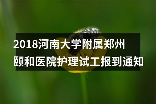 【2018河南大学附属郑州颐和医院护理试工报到通知】相关岗位:
