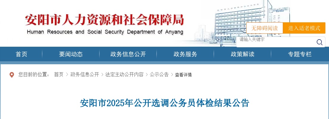 原标题:安阳市2025年公开选调公务员体检结果公告