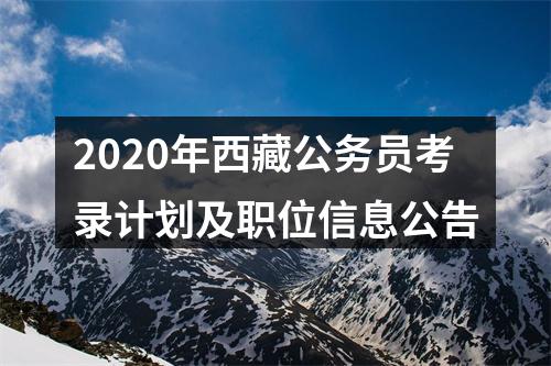 现将2020年我区高校毕业生公开考录公务员计划及职位信息予以公布,请各位高校毕业生结合自身实际,做好备考及择业准备。具体考试时间及考录公告另行通知,请关注西藏自治区人力资源和社会保障信息网(http:// )。